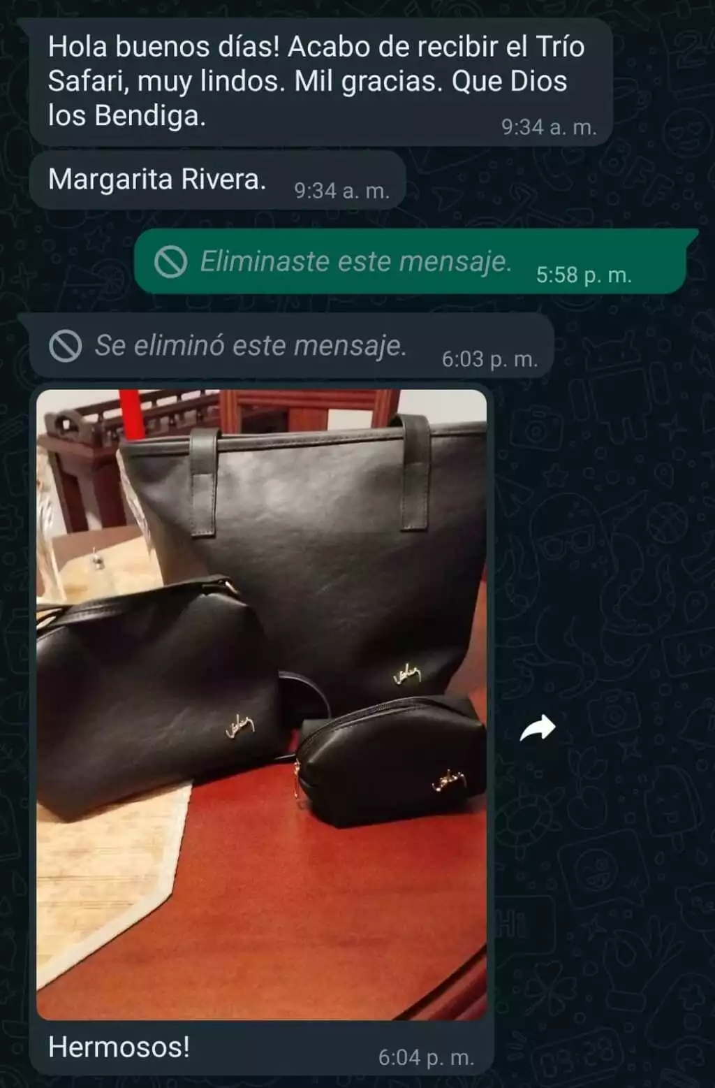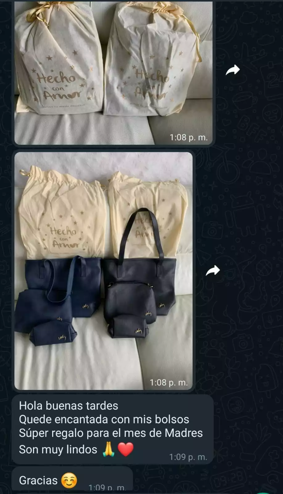 Estoy contenta con mis bolsos y mi cosmetiquera. Por el precio... Ciertamente vale la pena. Satisfecha con la calidad y el servicio.
